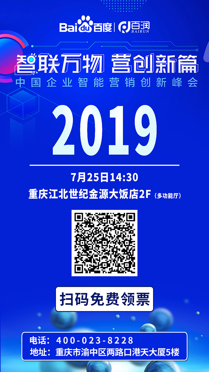 2019年7月25日下午14:30,以“智聯(lián)萬物,營創(chuàng)新篇”為主題的2019百度中國企業(yè)智能營銷創(chuàng)新峰會在重慶江北區(qū)世紀(jì)金源大飯店2樓多功能廳隆重舉行。百度重慶營銷服務(wù)中心與行業(yè)精英為各行各業(yè)的企業(yè)朋友們帶來了智能互聯(lián)網(wǎng)時代最新的營銷理念,相信只有掌握了智能營銷的方向,才能在營銷變革中占得先機。