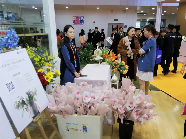 和它的名字一樣,雅居樂(lè)的展廳現(xiàn)場(chǎng)也充分體現(xiàn)了一個(gè)“雅”字。門(mén)口一邊是一片青蔥的綠植裝飾,另一邊則是為顧客準(zhǔn)備的鮮花手禮。整個(gè)展廳里到處都是鮮花和綠植,完美體現(xiàn)了雅居樂(lè)“一生樂(lè)活”的理念。他們這種貼近自然的展廳布局似乎很有效,在小編抵達(dá)現(xiàn)場(chǎng)時(shí),這里已經(jīng)聚集了一大批看房的顧客,全都圍在雅居樂(lè)主推項(xiàng)目“富春山居”的展臺(tái)前,仔細(xì)地聽(tīng)著工作人員的講解。作為雅居樂(lè)的主打項(xiàng)目,富春山居在此次秋交會(huì)上也有不小的優(yōu)惠,小高層額外96折,洋房額外97折,裝修小高層額外98折。