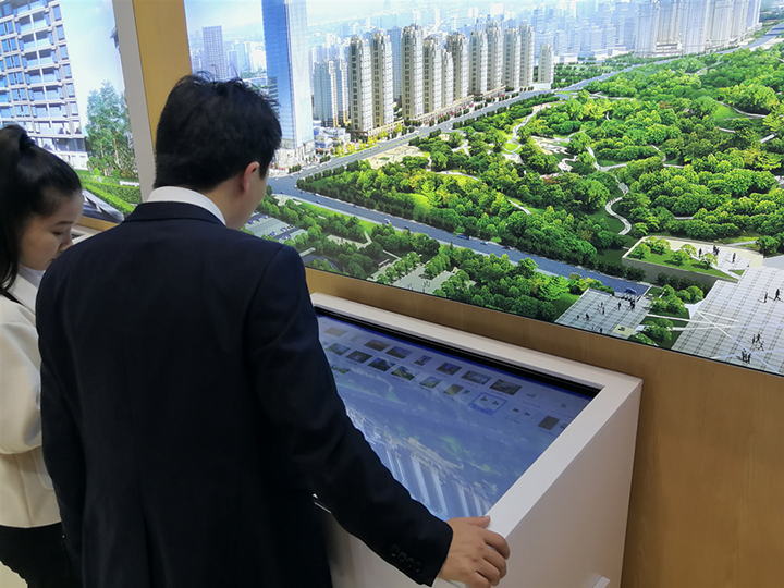 如果只用一個(gè)詞來(lái)形容中國(guó)摩,那應(yīng)該就是“大氣磅礴”了。走進(jìn)中國(guó)摩展廳,小編立馬被中間人群簇?fù)淼纳潮P(pán)模型吸引了注意力,“文旅大城”、“價(jià)值高地”等字眼深深地印入了小編的心中。另外,中國(guó)摩展廳還提供了少見(jiàn)的VR看房功能,戴上VR眼鏡便可以親臨中國(guó)摩之中,仔細(xì)欣賞一磚一瓦、一木一叢,體會(huì)那種君臨天下的氣勢(shì)。