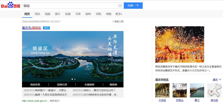 百度“銅梁”,一鍵了解銅梁全景。