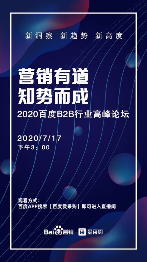 7月初,由百度愛采購攜手百度營銷中心聯(lián)合發(fā)布了《2020年百度B2B行業(yè)洞察報告》,該報告深度分析B端市場在2019年至2020年的核心數(shù)據(jù)、主要變化及未來趨勢。為了使各位企業(yè)老板更清晰看懂百度大數(shù)據(jù)的洞察,同時幫助企業(yè)解讀B2B行業(yè)萬億規(guī)模下的市場機會,把握需求者的決策行為與路徑特征,助力企業(yè)瞄準(zhǔn)需求,百度愛采購攜手百度營銷中心共同發(fā)起2020百度B2B行業(yè)高峰論壇。